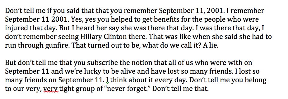 For him to imply that Senator Clinton didn’t care about the people of New York or the Americans that had just died is enormously cruel and entirely baseless. The right-wing works overtime to present this image of Hillary Clinton as cold, emotionless, uncaring – when in fact she’s devoted her entire career to the service of the American people, and it’s astonishing to see reality flaunted so casually by this senile old man.